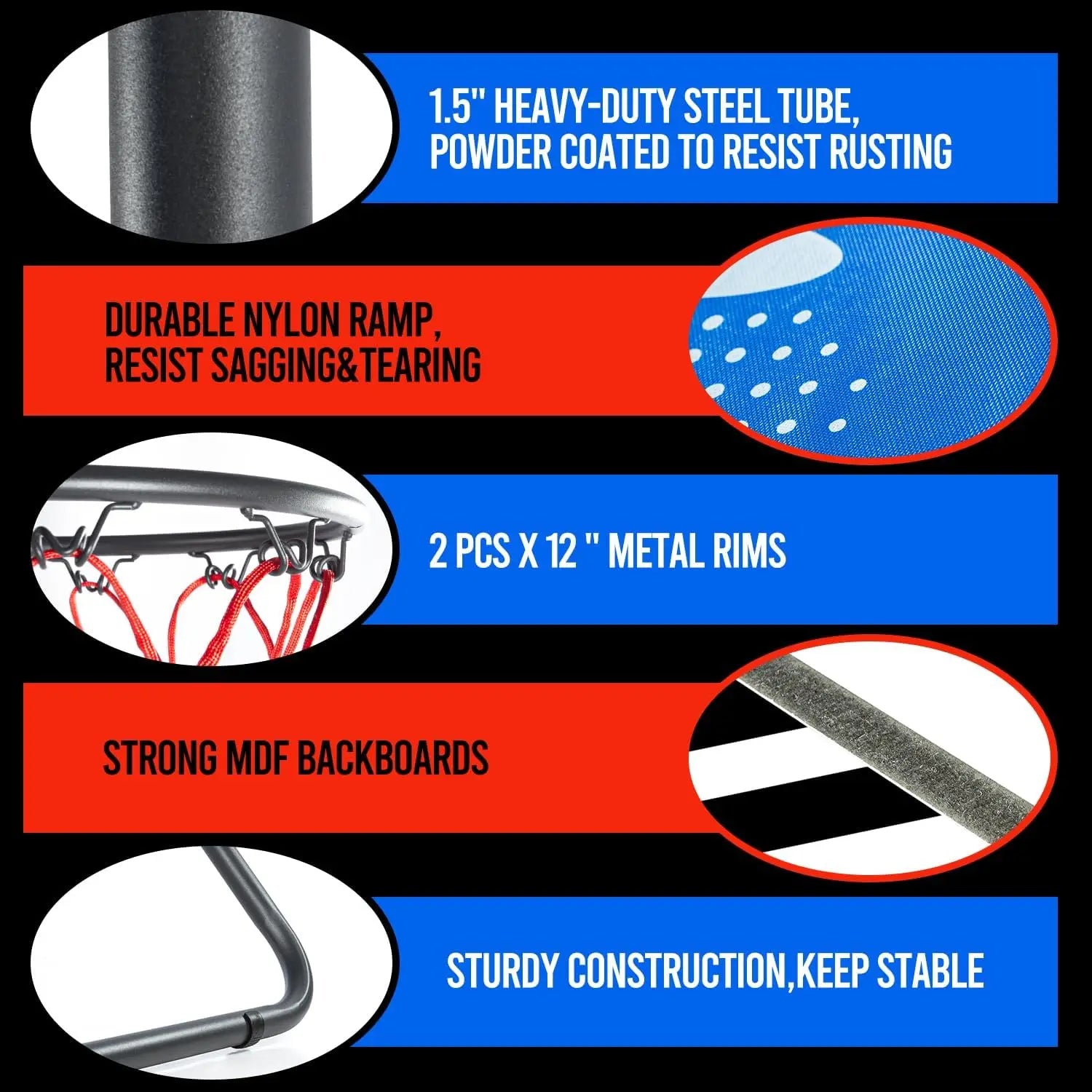 Elevate your indoor entertainment with our versatile basketball arcade game. Designed for players of all ages and skill levels, this game offers a dynamic and engaging experience that brings the thrill of the court right into your home. Key Features: - Height Adjustability: Easily customize the hoop height from low to high settings, making it suitable for kids and adults alike. This feature ensures everyone can enjoy playing without any hassle. - 8 Game Modes: Choose from a variety of modes including timed challenges, score-based competitions, and practice sessions. Each mode provides unique gameplay to keep things exciting and help improve shooting skills over time. - Immersive Arcade Sounds: Enjoy realistic sound effects that mimic a real arcade environment, enhancing the fun and making each game feel more authentic. The sounds add an extra layer of engagement without being overwhelming. - LED Display: A bright and clear digital display shows scores, timers, and other game information at a glance. It's easy to read even in different lighting conditions, helping players track their progress effortlessly. - Foldable Design: When not in use, the game folds compactly for convenient storage. This space-saving feature makes it ideal for homes with limited room or for those who want to set it up quickly whenever desired. - Complete Set Includes: Comes with 4 durable balls made from high-quality materials that bounce well and withstand regular play. An air pump is also provided to maintain optimal ball inflation for consistent performance. Benefits: This basketball arcade game is perfect for family gatherings, parties, or solo practice sessions. It encourages physical activity in a fun way, helping to develop coordination and motor skills while providing hours of entertainment. The adjustable height allows it to grow with younger players or accommodate different preferences among adults. Usage Tips: For best results, set up on a flat surface indoors where there's enough space to move around safely. Regularly check the balls' inflation using the included pump to ensure they perform as intended during gameplay.