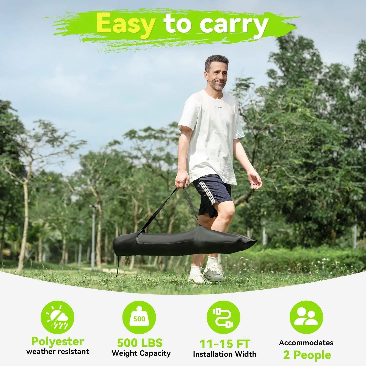 Enhance your relaxation with our premium double hammock, designed for comfort and durability in any setting. Key features include: - **Spacious Design**: Perfectly sized for two people, offering ample room to lounge together or stretch out solo. - **Handwoven Rope Construction**: Crafted from high-quality, weather-resistant rope that ensures strength and a classic aesthetic appeal. - **Spreader Bar Included**: The integrated spreader bar keeps the hammock open and stable, preventing tangling and providing even weight distribution. - **Versatile Use**: Ideal for both indoor spaces like living rooms and outdoor areas such as patios, poolside decks, backyards, gardens, or camping trips. - **Easy Setup**: Comes ready to hang without a stand; simply attach to trees, posts, or hooks using the included ropes and carabiners for quick installation. - **Durable Materials**: Made to withstand various weather conditions, including sun exposure and light rain, ensuring long-lasting performance. - **Comfort-Focused**: The ergonomic design supports natural body contours, promoting relaxation and reducing pressure points during extended use. - **Low Maintenance**: Requires minimal upkeep; occasional cleaning with mild soap and water keeps it looking fresh. This hammock combines style with functionality, making it a great addition to any home or vacation spot. Enjoy peaceful moments alone or share cozy times with loved ones in this versatile piece.