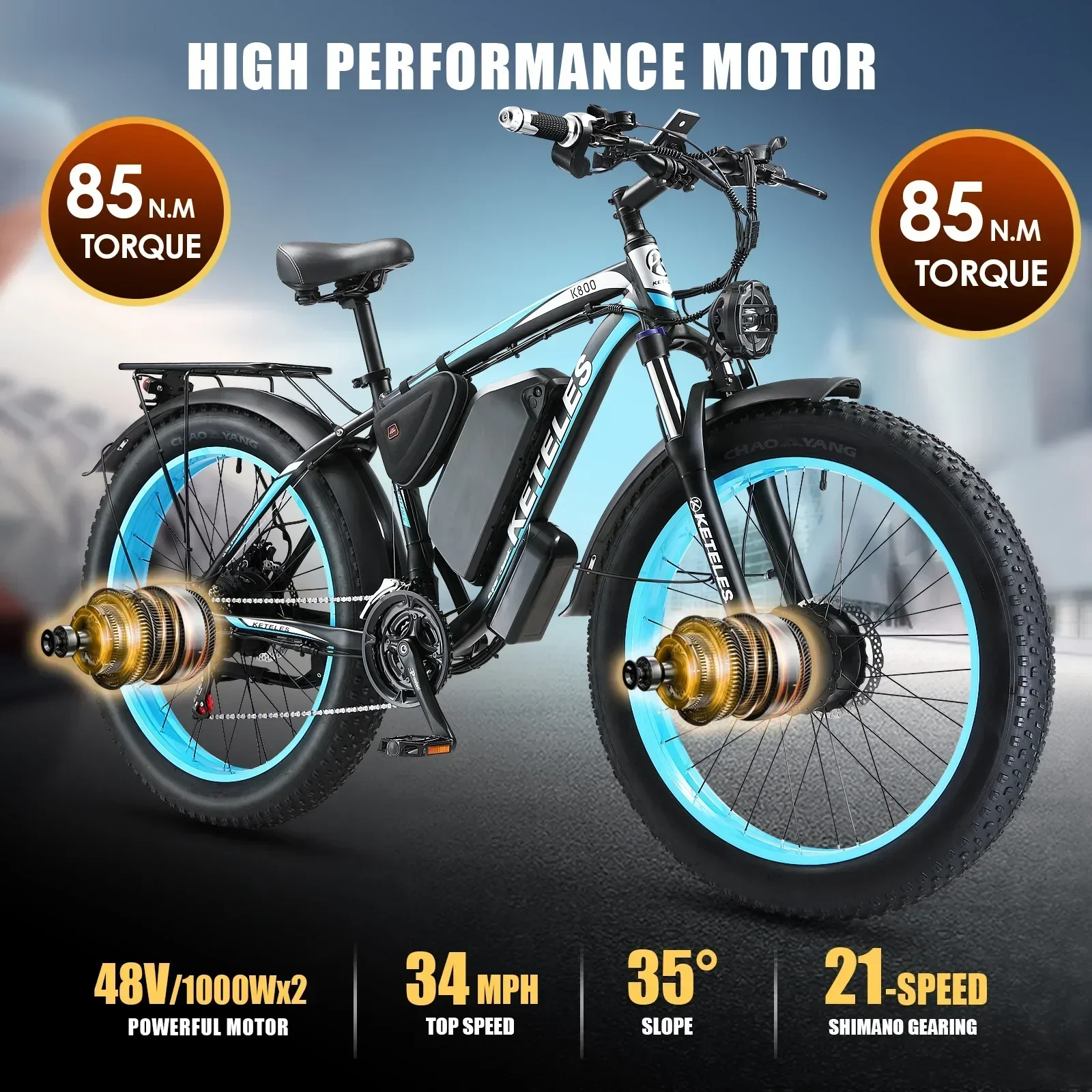 K800 Electric Bicycle 2000W Dual Motor Drive 48V23AH Mountain Off-road E Bike Hydraulic Brake 26*4.0 Inch Fat Tire Electric Bike