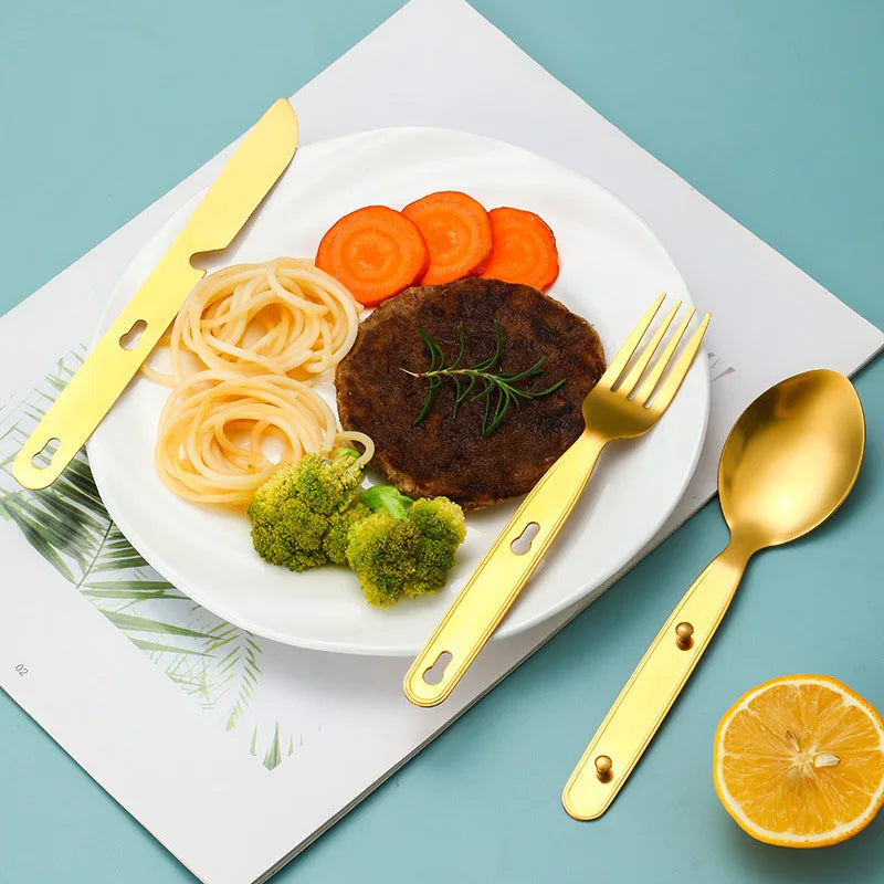 Stainless Steel Folding Camping Cutlery Set Compact Durable for Camping Hiking Picnics BBQs Essential Travel Kit